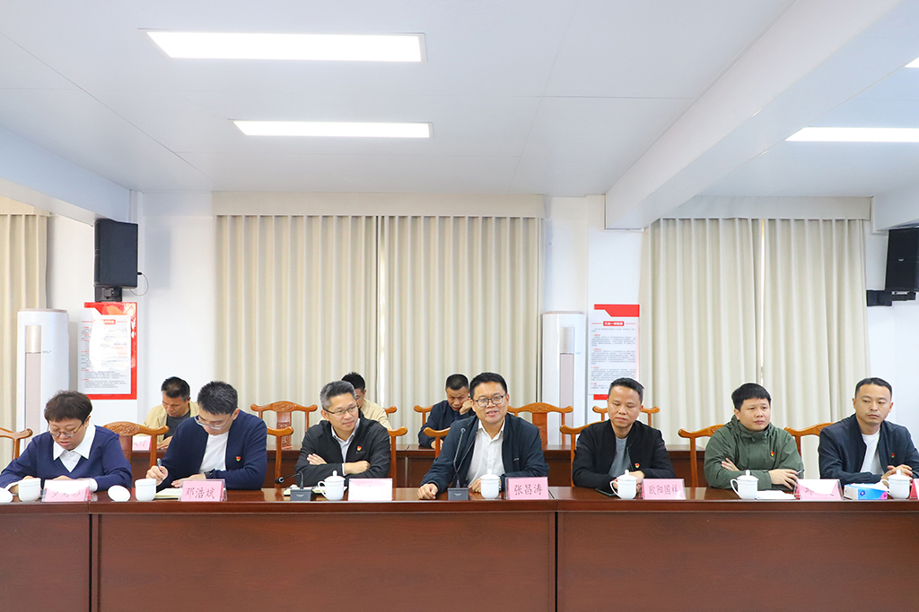 在古城村委会,调研组与驻县帮扶工作小组组长张昌涛,蓝钟镇党委副书记、镇长赵森雄,驻镇工作队队长欧阳国祥及公司派驻干部伍国洪一同参观岳山课堂线下教室,深刻感受党建引领下的乡村发展活力。紧接着,双方召开务实高效的座谈交流会。会上,双方围绕 “百千万工程” 实施要求,聚焦蓝钟镇产业发展、基础设施升级、民生服务保障等内容开展深入探讨,为后续进一步对接协作、精准支持奠定了坚实基础。