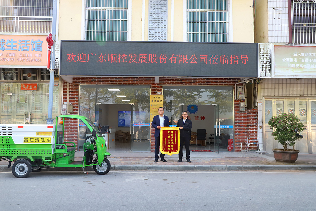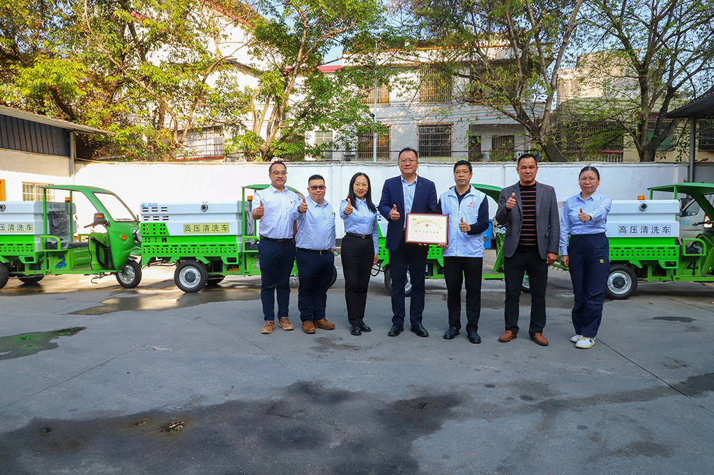 在今年6月18日,怀集县遭遇超百年一遇历史最大洪水淹浸,公司迅速捐赠10万元购买5台高压冲洗车,用于怀集县灾后道路、居民房屋清洁和平安村人居环境美化工作。