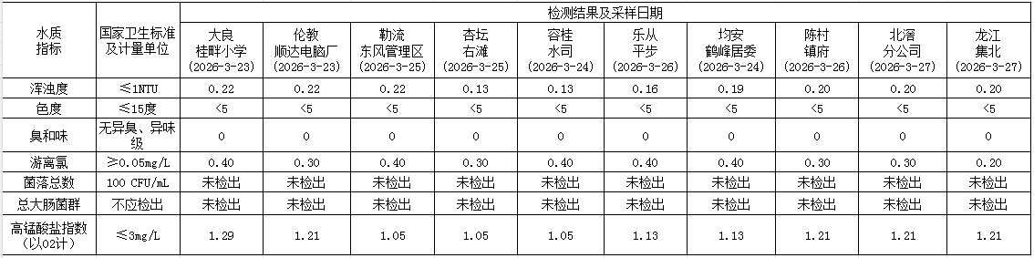 一、出厂水9项水质情况(采样日期:2026年3月27日)